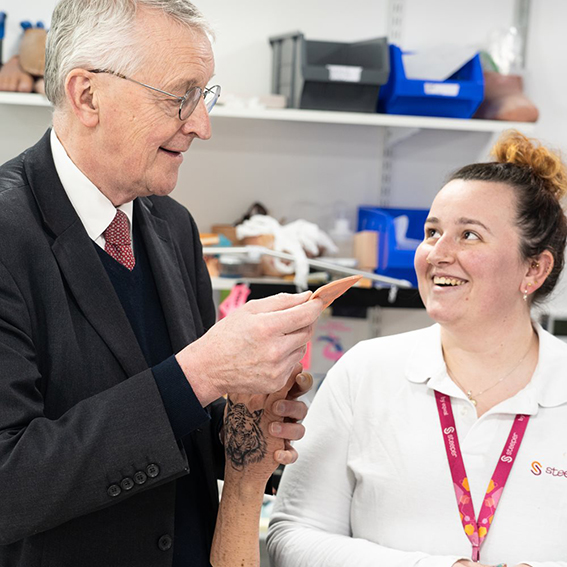 Benn 议员在参观了 Steeper 集团占地 4,700 平方米的先进生产设施后,对公司的精湛工艺留下了深刻印象。他现场观摩了全球知名的 Espire 肘关节假肢的制造流程,以及为患者量身定制的矫形器手工制作工艺。