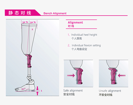 同时,配备的可移动式膝上四棱锥连接盘允许调整平移人体重力线+/-5MM,进一步提高了行走的稳定性和舒适性。