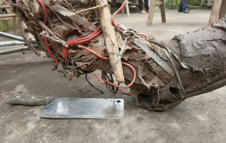 这位大爷背后究竟有着怎样的故事?这位67岁的“别样假肢”大爷敖治荣在8年前外出打工时受伤截肢,后来安装了假肢但磨损较快,为了节约钱,他只好用木棍、绳子、电线等绑扎加固损坏的假肢。